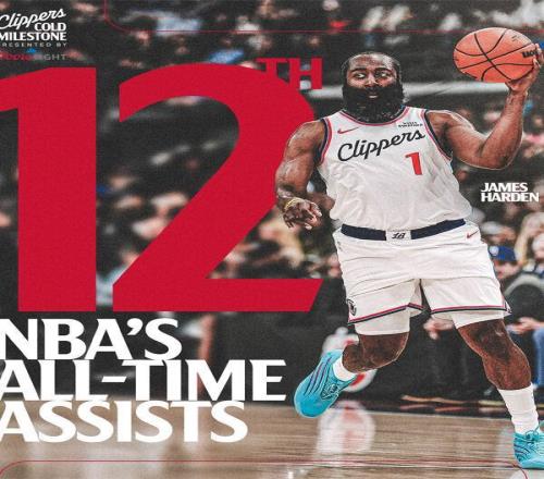里程碑时刻!哈登生涯总助攻数升至历史第12 -