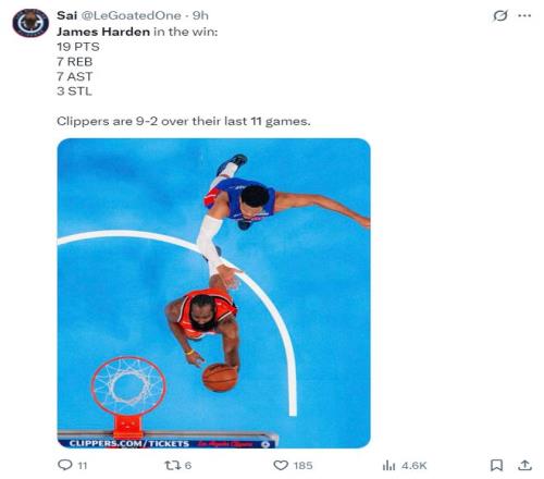 近11战9胜哈登在场+68!场均24+8快船基本盘联盟第7进攻超巨真猛