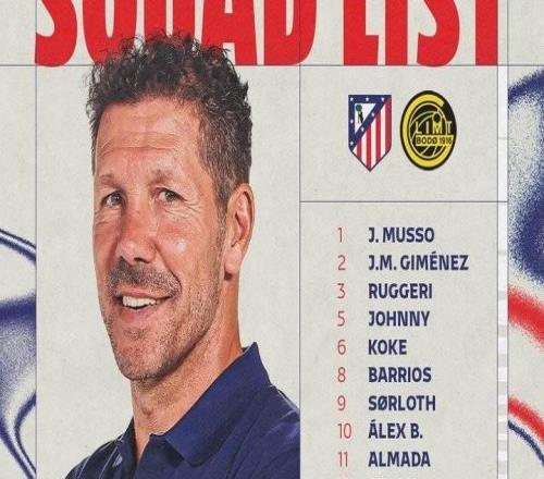 马竞战博德闪耀大名单:格列兹曼缺阵,小蜘蛛、瑟洛特在列